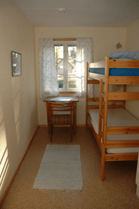 I denna del av anläggningen kan man hyra enkel, dubbel, 2 bädds, 3 bädds och 4 bädds rum där våningssängar är det mest vanliga. Gemensamt för dessa är att dusch och toalett delas och att man själv tar med sänglinne och handdukar eller väljer att hyra detta av oss. Möjlighet att laga egen mat finns i vårt gemensamma kök När det gäller dubbelrummen så är sängarna bäddade, handdukar och slutstäd ingår.